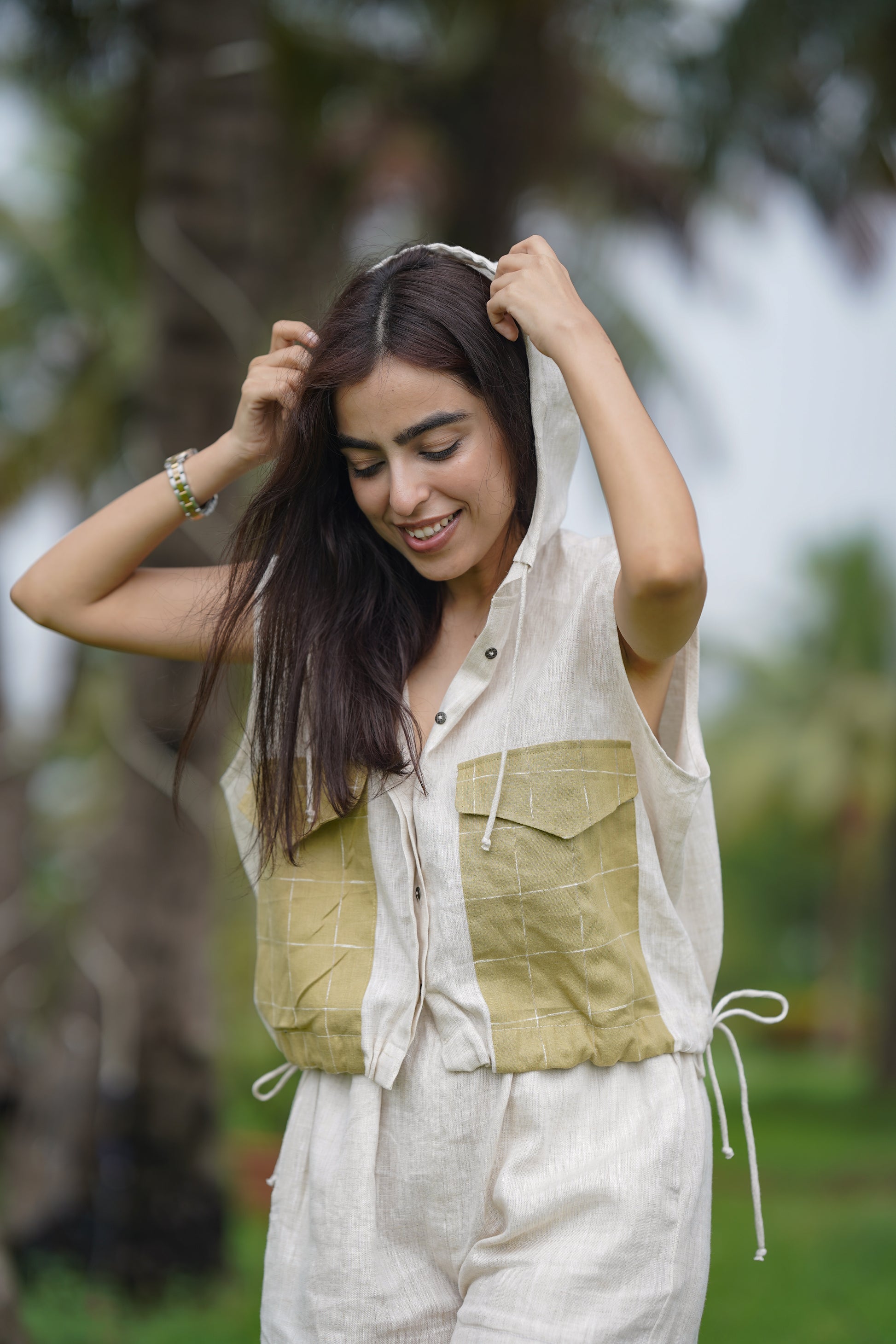The Big Hood Shirt is a modern sleeveless hoodie with a relaxed fit and stylish side knot detail. Crafted from 100% linen, it’s breathable, lightweight, and effortlessly comfortable. Perfect for casual layering or athleisure-inspired looks, it combines comfort with contemporary style.