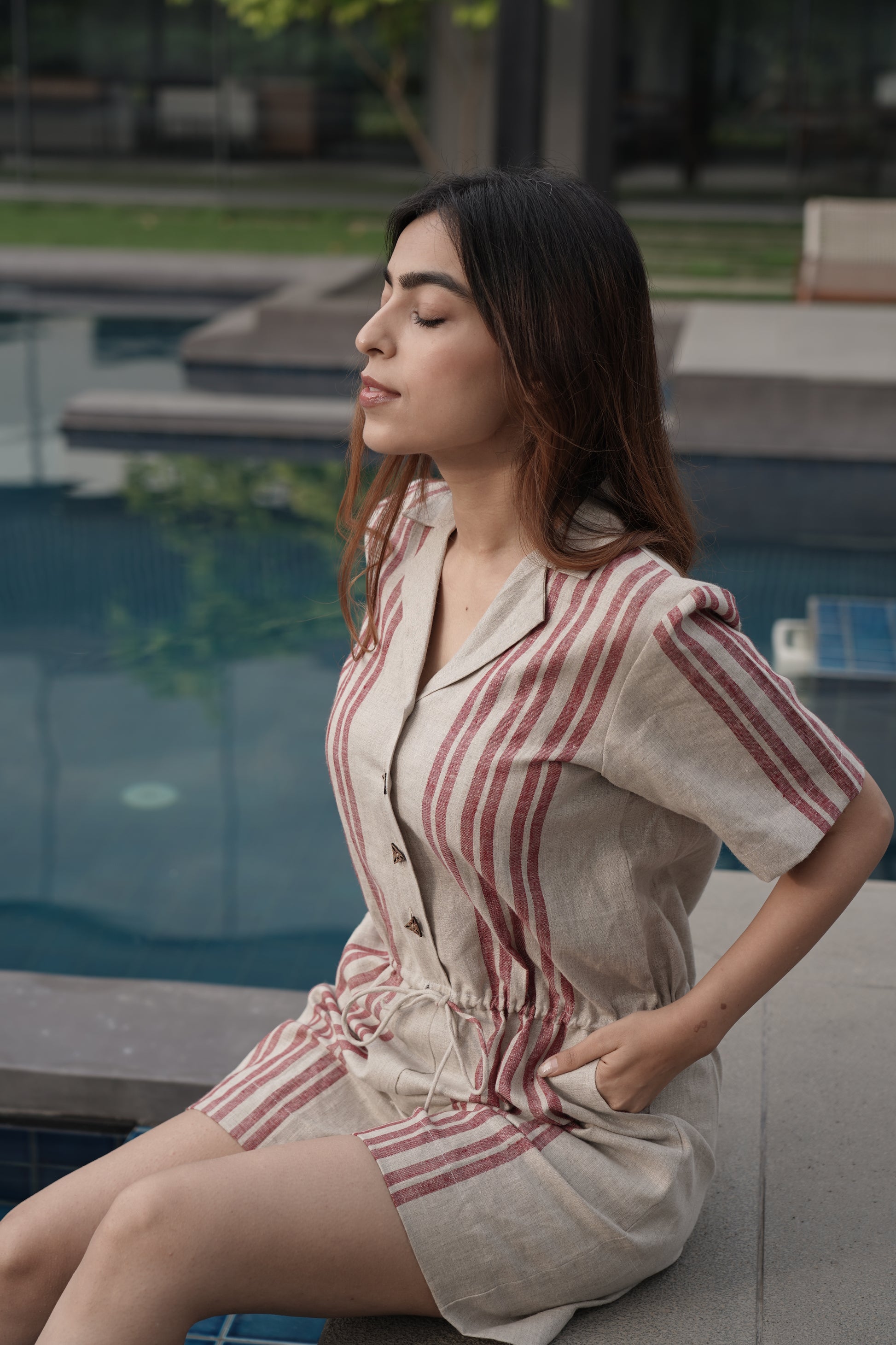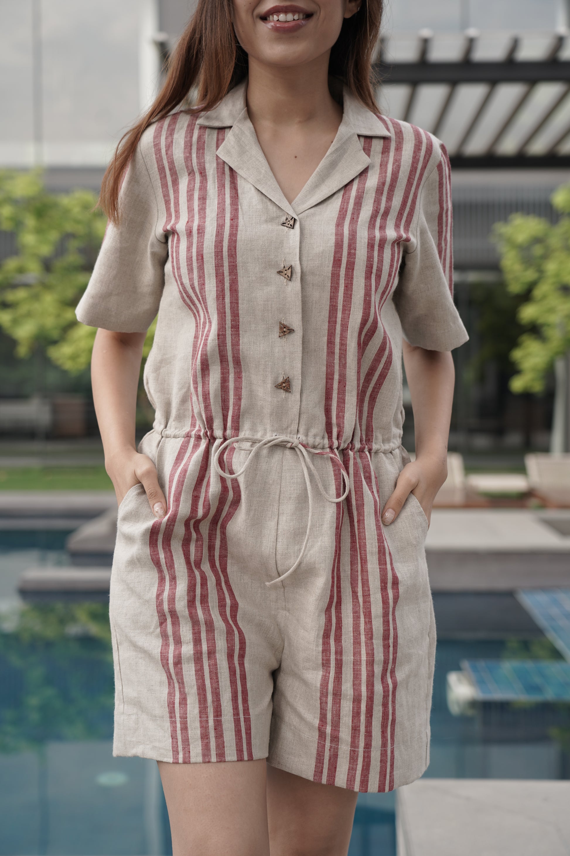 Effortlessly chic and functional, the Knot It Linen Jumpsuit is crafted from 100% breathable linen, combining comfort with modern style.