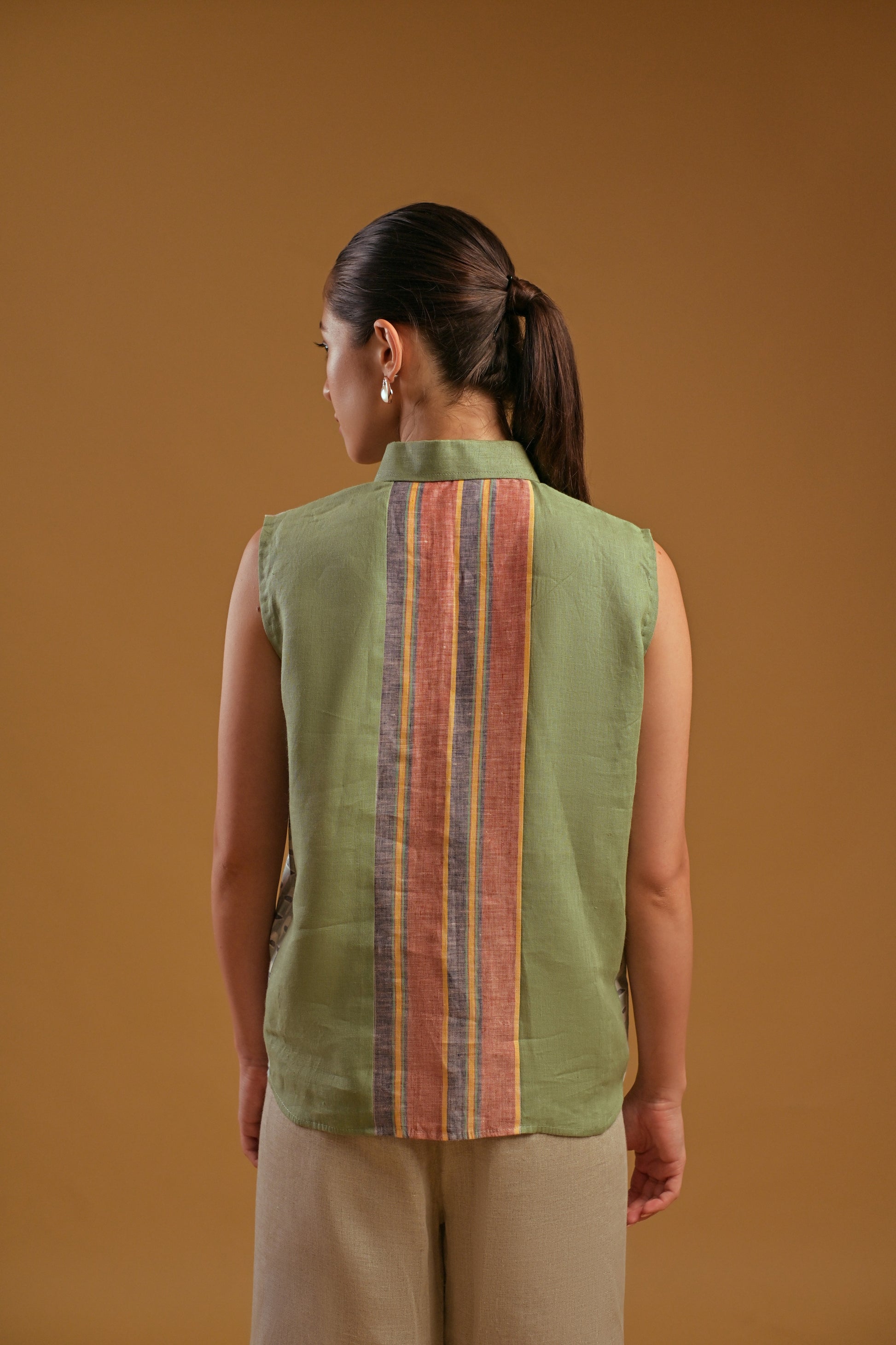 The Patch It Shirt is a sleeveless, regular-fit classic with a crisp shirt collar for timeless style. Crafted from 100% linen, it offers breathable comfort and lightweight ease, perfect for warm days. A versatile piece that can be worn solo or layered for effortless everyday sophistication.