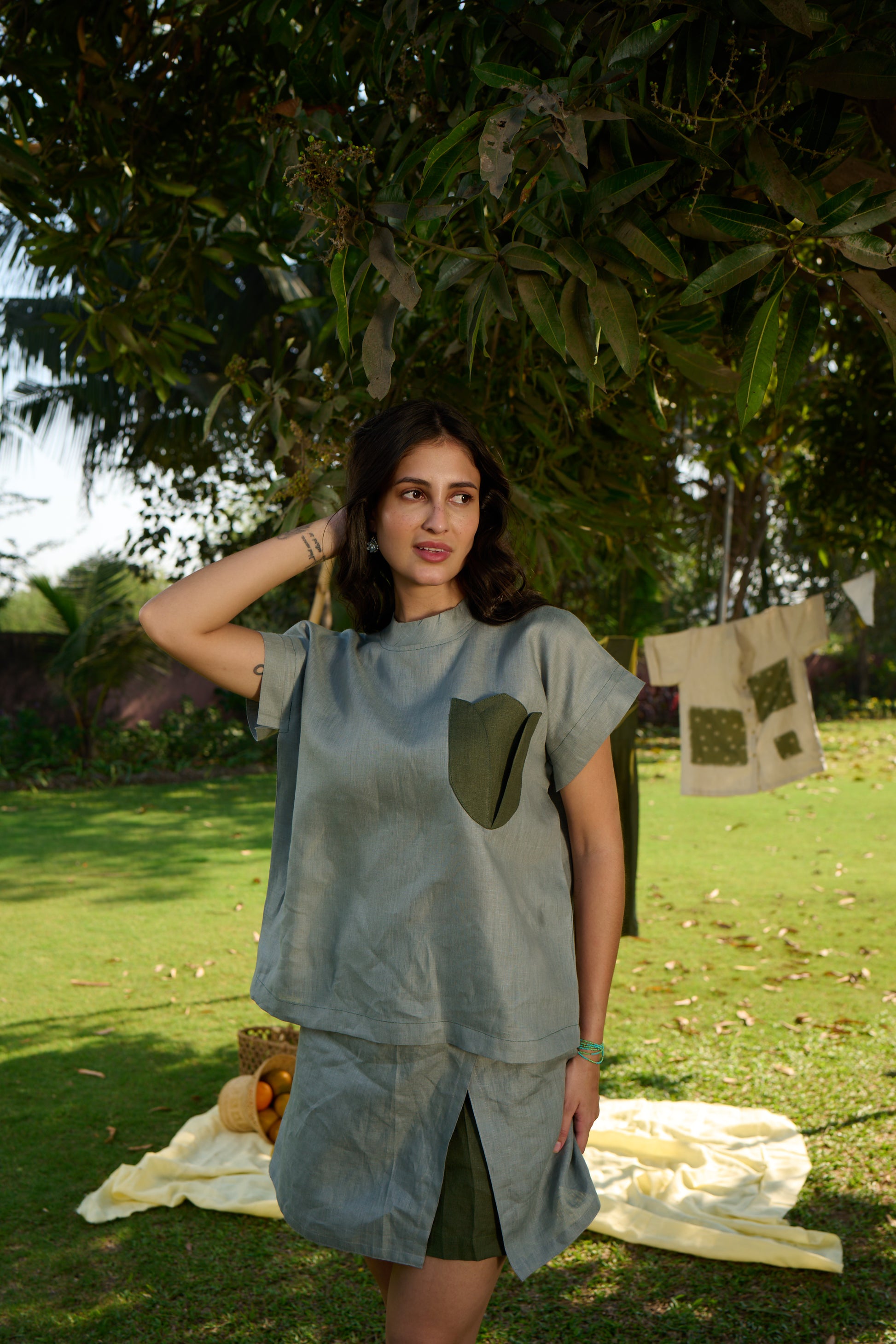 The Petal Theory Top by Label Tanvi Mittal is a timeless essential crafted from 100% breathable linen, designed for effortless everyday elegance. Featuring a relaxed loose fit and a functional front pocket, this piece perfectly blends comfort with contemporary minimal style. Ideal for warm days, it embodies the brand’s signature sustainable and breathable linen fashion.