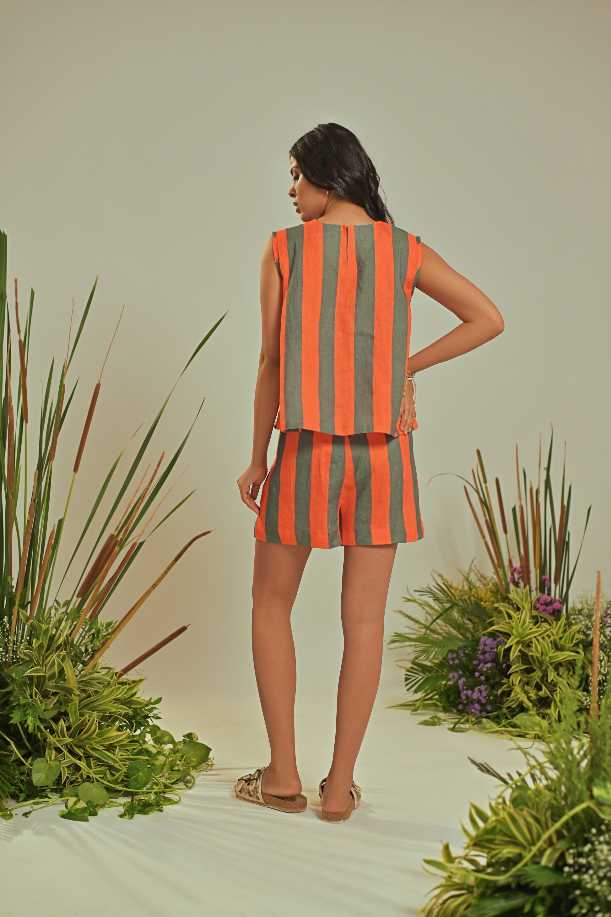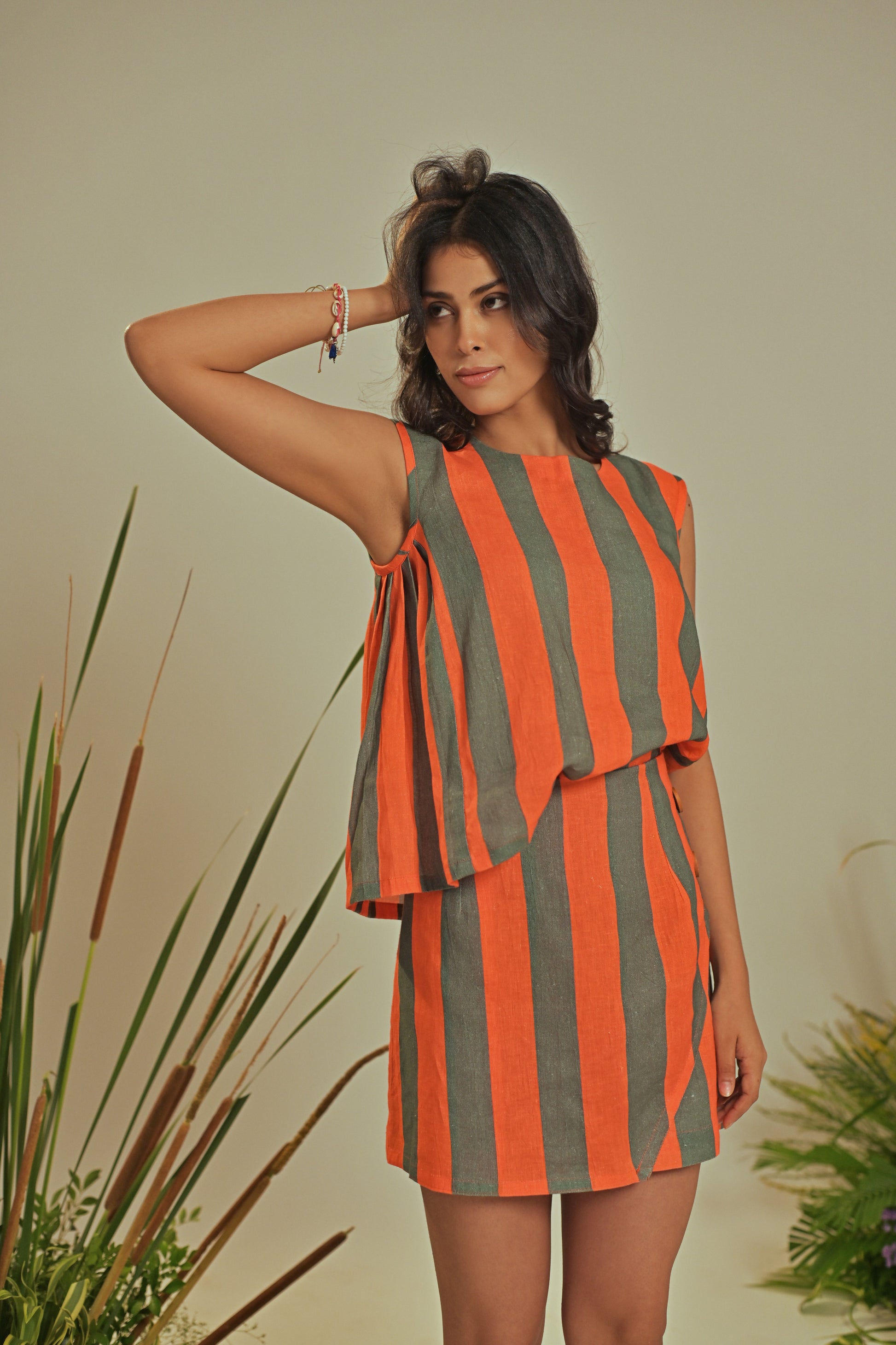 The Pine Top is effortlessly chic with its flowy silhouette and sleeveless design. Featuring elegant side pleats and crafted from 100% linen, it offers lightweight comfort and natural breathability. Perfect for relaxed days or styled up for warm-weather outings, it’s a versatile addition to any wardrobe.
