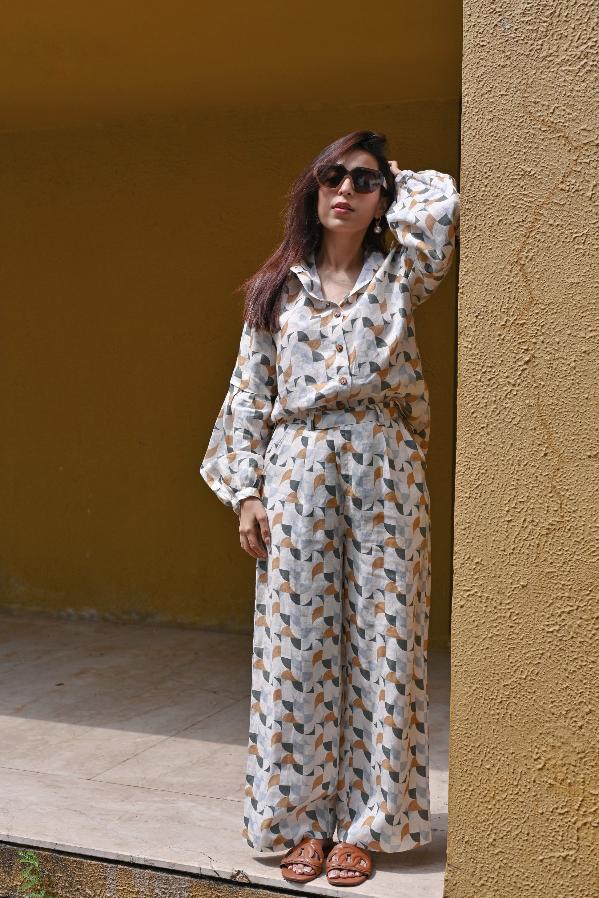 The Tan-Tan Shirt is a relaxed, loose-fit piece with unique gathered two-layer sleeves that add texture and movement. Crafted from 100% linen, it’s breathable, lightweight, and effortlessly comfortable. Perfect for casual outings or paired with tailored bottoms for a chic, elevated look.