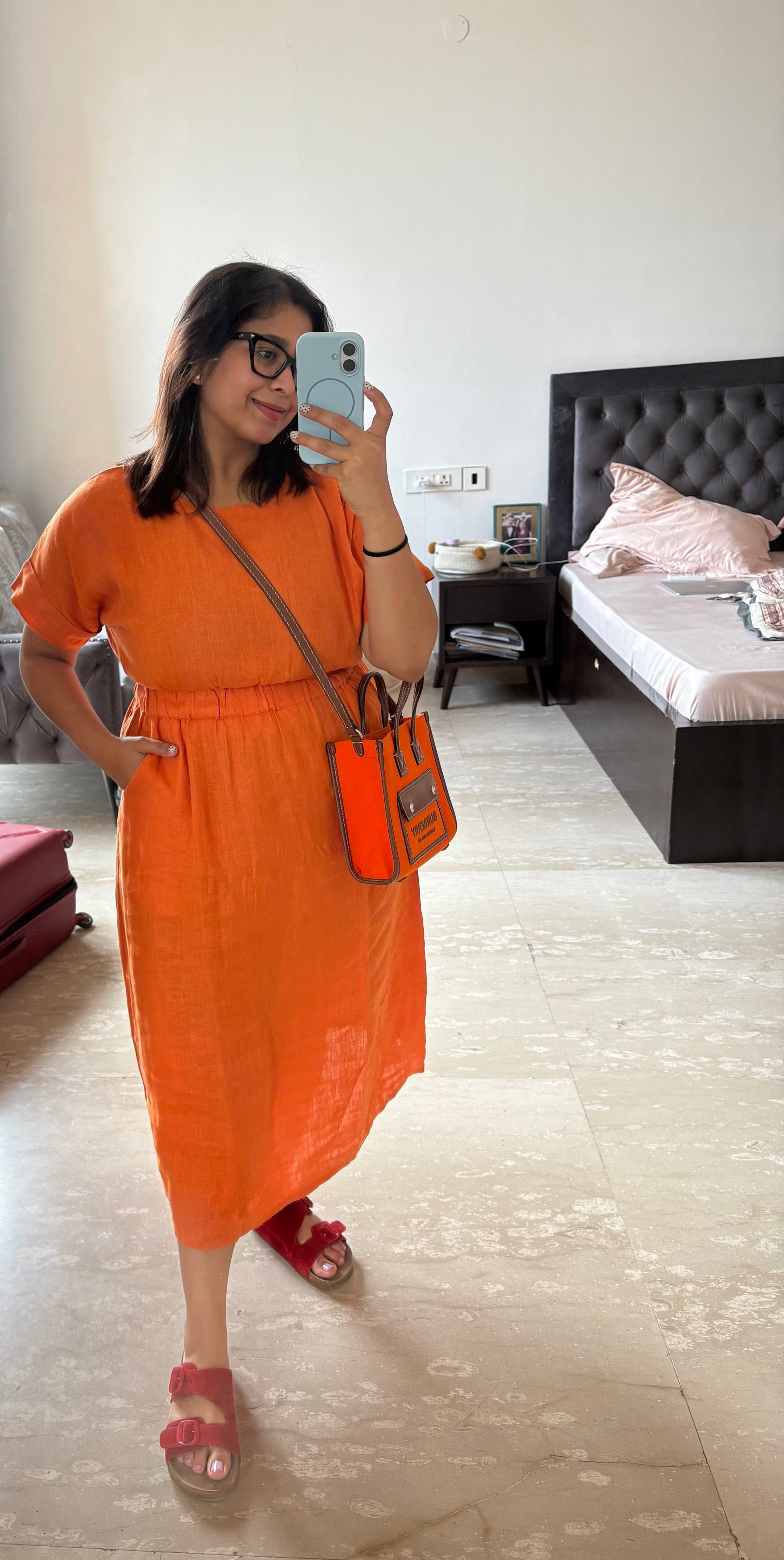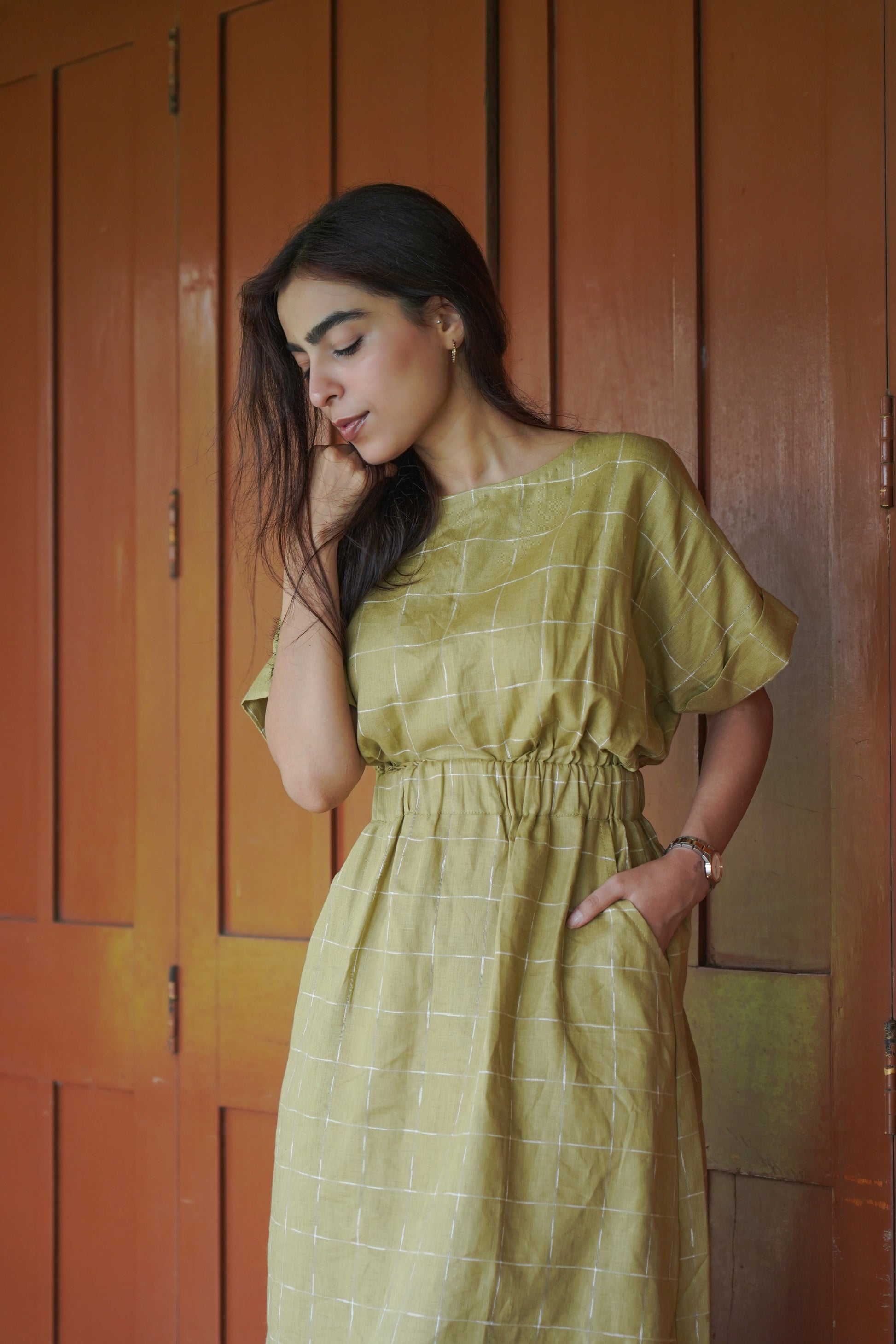 The boat neckline lends a clean, elegant look, while the broad waist elastic defines your silhouette without compromising on ease. Thoughtfully designed with pockets, it’s as practical as it is stylish. Available in refreshing green checks and vibrant orange, the Terra Dress brings versatility and character to your wardrobe.